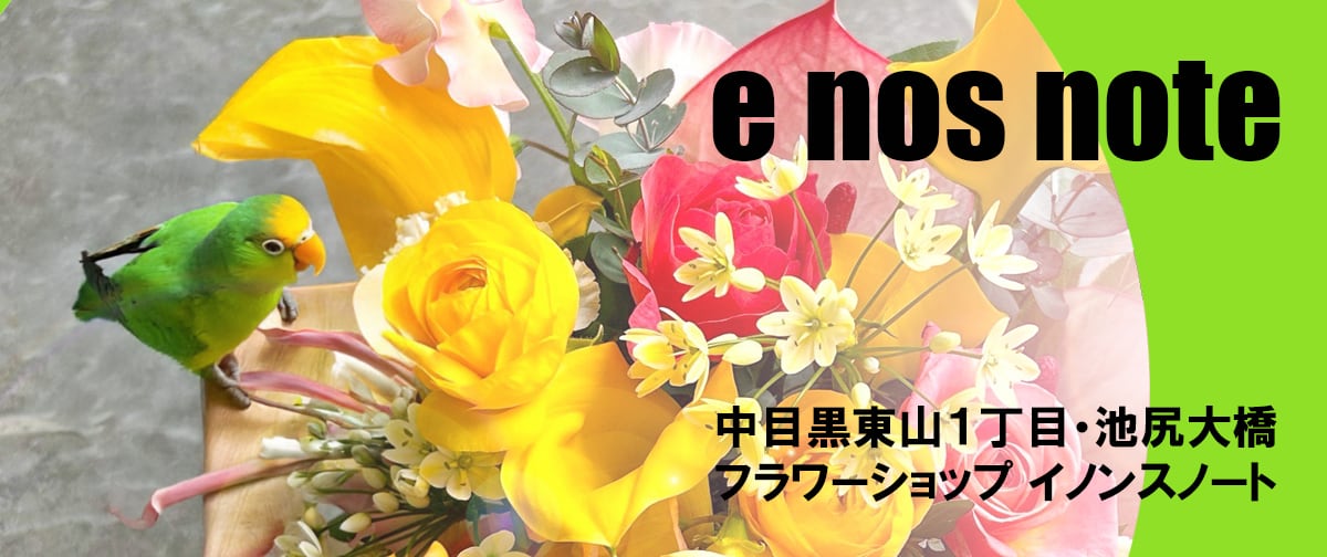 中目黒の閑静な住宅街にあるビビッドな緑の看板が目印の小さな花屋です。